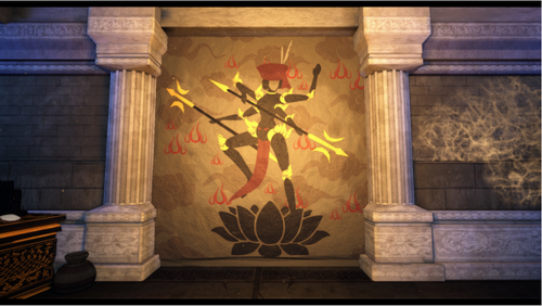 (3)场景内有两个石头架和两个钉墙。石头架可以引诱Boss冲撞过去。撞碎架子后,石头会落下,不仅对Boss造成大极大伤害,还可以制晕一段时间,让Boss无法动弹。只可惜每个架子只可使用一次。