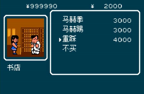 右行出来在此商业区这个场景左边第1家商店买にんげんぎょらい8000 (大力摔击对手)。