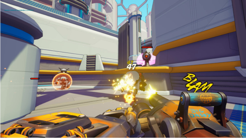 机器人任务用守望先锋的柔和光处理与贴图质感,加入无主之地的武器与战斗节奏,还有粗犷的黑边。RoboQuest就是这么做的,并且融合的非常出色。