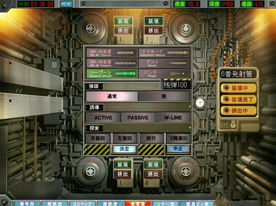鱼雷室:指令比较简单,装填、排出鱼雷。因为装填需要一定时间,鱼雷发射后要及时重新装填,以免错过攻击时机。