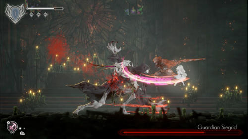2.你最初的攻击手段是“黑色骑士”,但你每打完一个boss(不管是大boss还是小boss)你都会获得新的主动技能(到后期好像有一堆技能,但只有两组配置,每组配置只能带三个技能),除了平A以外,其它主动技能都是限制次数和CD的,但是可以通过击打地图中的红色花朵/保存点回满。除了这些主动技能,还有流程中的被动技能(二段跳等等),所以当你发现一个区域内有到不了的地方,不要着急,继续往前走,后面会有让你到达前面到不了地方的被动技能的。