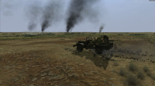 战场模拟:现实的视觉设备,烟幕和耀斑,战壕的创建,爆炸坑。以前的战斗残余留在战场上,直到行动结束。