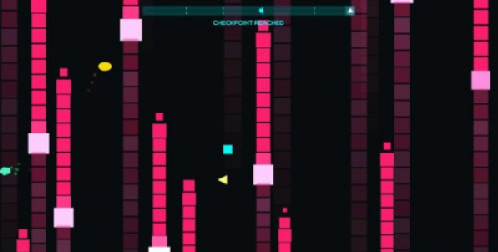 1、节奏型弹幕游戏,操纵方块躲避红色色块各式各样的疯狂攻击。