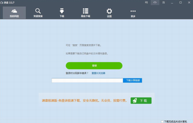 无需登录账户,打开速盘,添加分享链接即可直接下载资源,跳过将资源“保存到我的网盘”。同时,独有的速盘黑科技加速让您不登录也能享受超越SVIP的极致下载速度。