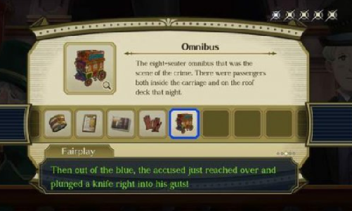 在法庭战斗中,玩家需要说服六名陪审员替委託人争取无罪判决,说服进度以天秤显示,黑色方带表有罪判决,白色方代表无罪判决。每位陪审员会说明他们做出有罪判决的理据,玩家需要找出其中矛盾的主张,指出其逻辑缺陷,当成功指出矛盾就能改变其想法令陪审员站在己方,玩家的最终目的是说服所有陪审员让天秤倾向无罪的一方。