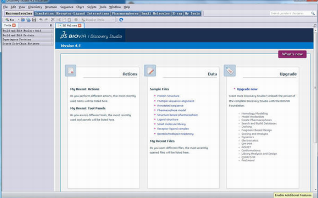 《Discovery Studio破解版》是一款功能强大的化学实验软件,软件主要的功能就是让您在编辑化学教材的时候拥有更多的模型和图纸设计方案,通过这款软件将您的数据可视化,将实验数据放到软件上转换为三维分子模型,这样您的定义实验结果的时候就更加清晰了,软件拥有的功能非常多,而且还支持模型构型、模型分析、科学应用、脚本编写、图像分析、药理基团、DSVisualizer、静电学、力场、药理学、PipelinePilot、蛋白质建模、RL互动、序列分析、排序、模拟、X射线等多种功能。