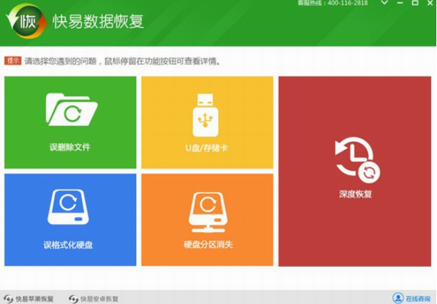 《快易数据恢复破解版》是一款功能强大、界面简洁、操作简单的数据恢复软件,软件五大栏目有误删除文件、U盘存储卡、误格式化硬盘、硬盘分区消失、深度恢复,文件恢复后原有的东西都不会发生改变,达到100%恢复效率并完美的重现在你的眼前,能恢复多种储存设备硬盘、移动硬盘、u盘、SD卡、储存卡、数码相机等等,感兴趣的用户快来下载体验吧。