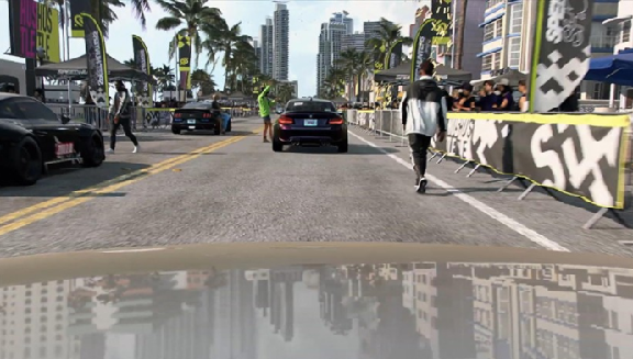 各种视觉线索提供真实的驾驶员体验,包括一个三维的HUD,模拟驾驶员头部运动,惯性和重力。景深也会根据车速进行调整;所以当汽车高速行驶时,视角会转移到汽车/驾驶舱的焦距上