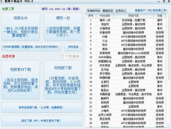 《视频下载高手破解版》是晨曦工作室开发的专业视频素材下载软件,它不但可以免费下载淘宝、天猫、等商品的主图视频,还可以一键批量下载好看、抖音、火山等APP短视频,支持多达40多个主流的网站和平台,同时,还可以对多段视频进行快速合并,是电商和自媒体网络涨粉吸粉的必备的辅助工具之一,软件还支持去视频水印、批量修改MD5、一键获取平台热门视频等功能,节省下载时间,充分提高工作使用效率,感兴趣的用户快来下载体验吧。