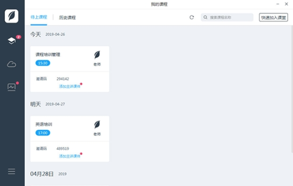 6、课程管理功能,在软件查看自己等待上课的课程,课程自动显示邀请码。