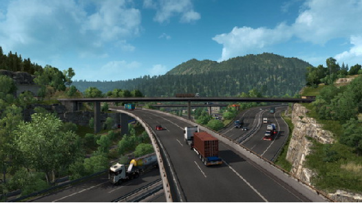 欧洲卡车模拟2在游戏图形的体验有着巨大的提升。尤其是在高画质下,阳光和阴影效果都十分出众,再加上栩栩如生的贴图,让你的游戏体验得到很好的改善。不论是在驾驶室的刻画,还是景物的模拟,欧卡2的画面都是极其精致的。而且在特别真实天气的衬托下,你的旅途显得更加充满色彩。也许你行驶在夜间黑暗的道路上、也许你正在通过瓢泼大雨的地带........