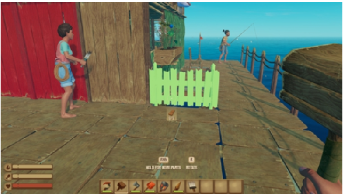 比如是地基,木板,楼梯,柱子等,一只创造锤就能解决任何与建造相关的问题。当鲨鱼攻击地基的时候要及时利用木质矛去反击,一来通过事后修补能减少相比建造木筏来说更多资源的消耗,二来鲨鱼在收到一定程度的攻击后便会死亡,在尸~体消失的这段时间里,可以不受危险的在附近周围搜刮资源,当然别忘记了还有鲨鱼肉可以吃。