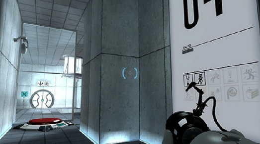 第七个房间 他踩下 按钮 屏障 消除 你在他那里打 连个传送门 让他通过
