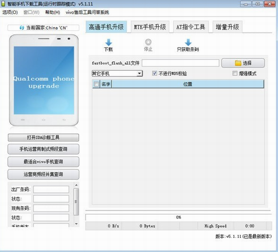 2、软件支持VIVO品牌的全部手机类型,提供AFTool多个刷机设置界面。