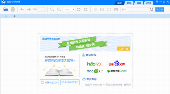 阅读器首次增加转换功能,支持将PDF转换成WORD,用户可注册登录后,根据转换需求,实现文档之间的格式转换。