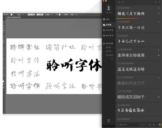 无需下载和安装字体,轻轻一点就能在各类支持的软件中使用字体、任意的切换字体,时刻让你专注于设计。