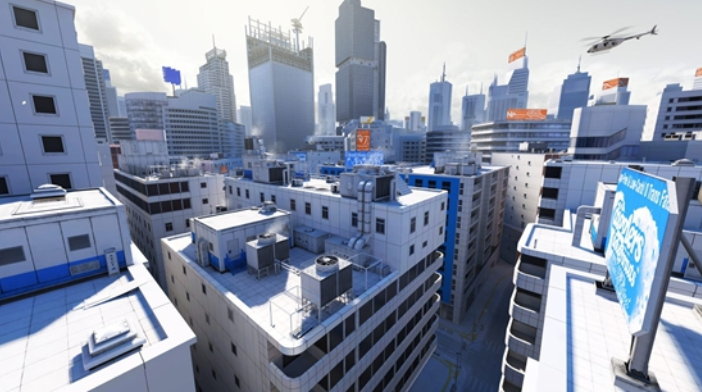 镜之边缘中文版游戏中在一座形似乌托邦的现代化的大都市,城市的建筑由白色的瓷砖、奢华的玻璃幕墙建造而成,开场设定可以改成女主高兴的举起那面镜子,游戏主打第一人称跑酷玩法,她沉浸在那片从没见过的世界,轻轨连接各大商业中心;城市居民在繁荣的社区内安居乐业、其乐融融。玩家们一路上经过了商业中心、高楼大厦、地铁站、建筑工地、下水道、船港、吊桥等地方,为了拯救姐姐,作为反抗组织的一员,与压迫者进行对抗。