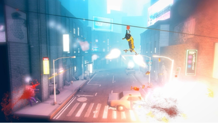 作为一款拥有3D场景的2D横板射击游戏,玩家要做的不仅仅是冲上去,把所有遇到的敌人杀掉,而是思考如何让他们死的更华丽。设计者非常懂的如何维持游戏乐趣感,当玩家觉得开始觉得手上这把枪有些玩腻了的时候,就会出现了一把新的枪供玩家把玩,当玩家觉得现有的击杀方式有些审美疲劳的时候,他就会出现新的道具和机关设计让你重新感受到乐趣