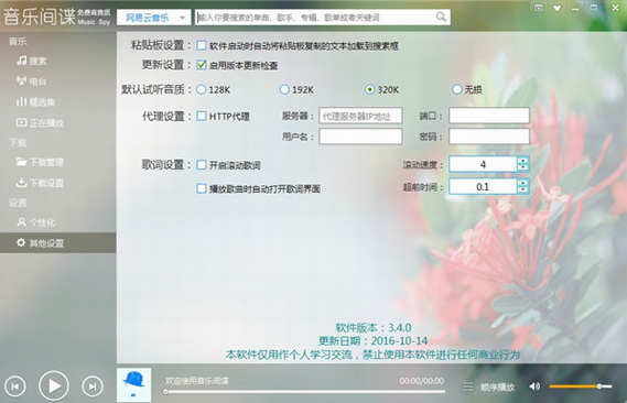 3、音乐间谍的操作很简单、下载速度很快,而且资源丰富。通过它可以下载无损、320K、193K、128K 等不同音质的音乐。Music Spy绿色版下载的音乐会自动增加 ID3 信息,自动插入歌曲名、歌手、歌词等信息,Flac 无损音乐还支持专辑图片插入。