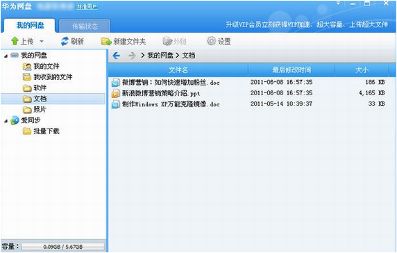 华为网盘国内首创了网盘本地操作国内,网盘文件删除、上传以及文件传输等功能都可以在本地客户端进行实时操作,而无需再去登陆到网页中进行相应的文件操作。在这里,你就可以像操作电脑硬盘一样操作华为网盘。