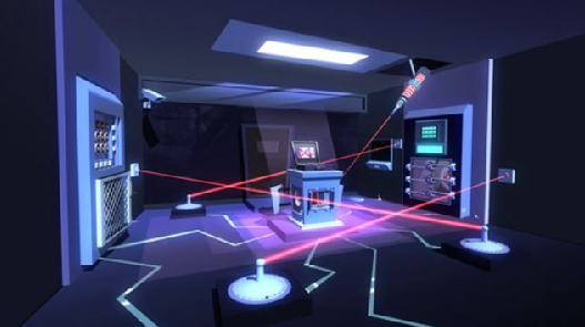 26、调查柜子的左侧,在下方的暗格里找到第六个发光的物体,打开黄色暗格按下按钮,地上出现第二个激光发射器。
