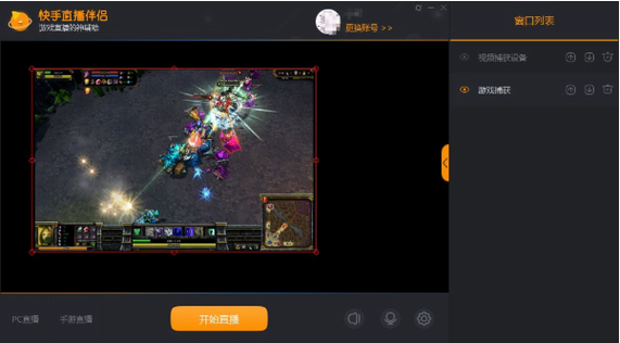 3、点击游戏选择按钮,弹出游戏选择框,快手直播伴侣会自动识别你已经安装并打开过的游戏。双击可以启动未打开的游戏或者将已经打开的游戏添加至直播窗口,此时将游戏放到全屏,直播伴侣便可直接读取游戏页面到已添加的窗口。