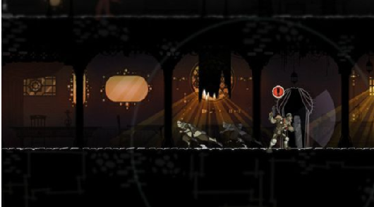 本作最为核心的机制,应该就是光和声了。本作的第一个关卡以非常有效的方式,教会玩家本作中光与声音的运作方式。本作中,大部分的区域是没有光照的黑暗区域,在这些区域中,主角不用刻意躲藏也不会被发现,除非直接从正面进入敌人狭小的视线区域。但一些吊灯、探照灯等光源的出现,使一些区域有光照,主角在这些区域内如果没有隐藏在物品后或者门里,就很容易被敌人看见。