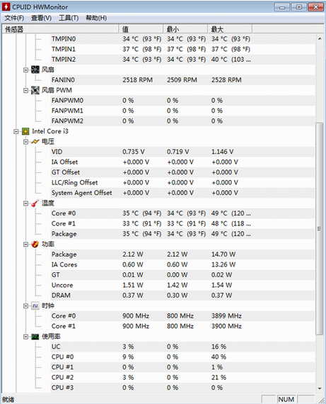 4、那这时HWMonitor就可以发挥它的作用了。通过它你可以实时查看到硬件的最真实情况,此外软件的系统资源占用率非常的低,丝毫不影响你的计算机正常使用;