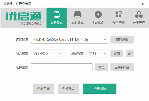 3、【全新制作】:将U盘制作为PE启动盘,使用此选项前请务必备份U盘内现有数据。