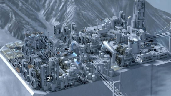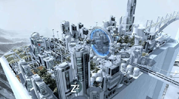 视角拉的远一点,整个城市在形成一定规模的之后,科幻效果十分不错