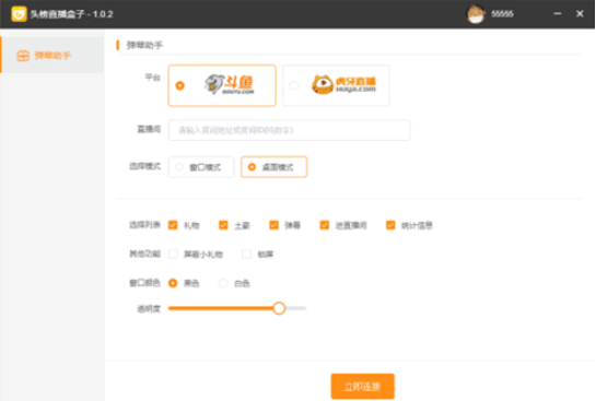 头榜直播盒子当前上线弹幕助手功能,弹幕助手支持斗鱼和虎牙两大直播平台,同时支持桌面模式和窗口模式方便用户根据不同直播场景切换不同使用模式。