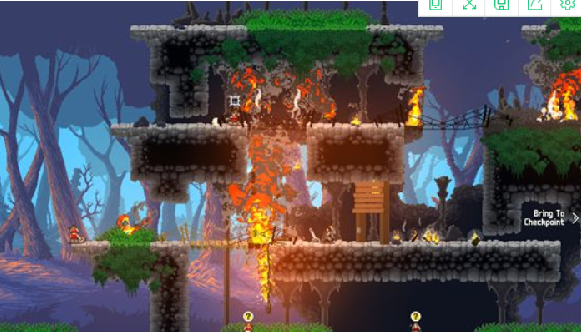 《野火》由Sneaky Bastards制作,Humble Games发行,是一款像素横版动作闯关游戏。游戏中火焰是一个重要的元素,使用元素的力量,你能够完成各种操作,当然你也能直接把火焰怼到敌人的脸上。在闯关过程中你将遇到被困的村民,沿路解救他们。