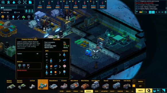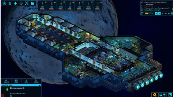 以等距方块拼贴而成的气体系统可以模拟飞船上的各种气体、温度和船员舒适度。人类、植物和设施会对其周围环境做出反应,从而为你设计的飞船和你创造的生活条件赋予意义。请确保设施安全,优化船员的生存水平和福祉,但同时也要考虑到未来可能发生的事故,以及船员战斗或环境危害造成的混乱。