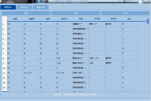 4、日语统计:统计日语文章中的各个单词数量;显示各个单词的平假名、片假名;结果导出为Excel文件。