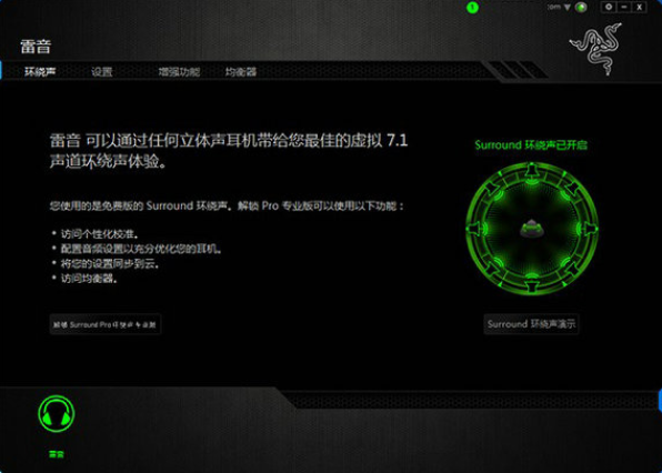 2、Razer Surround可以允许玩家针对自己的耳朵进行校准,使你能够配置完美的个性化设置。