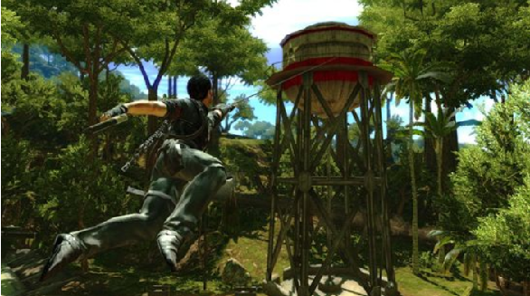 行动技巧:游戏中玩家可以使用各种行动的技巧,包括自由落体,高空跳伞,游艇冲浪,降落伞滑翔,俯冲,爪钩,弹弓,车辆之间跳跃,在直升机上悬挂,攀爬超大型建筑等等