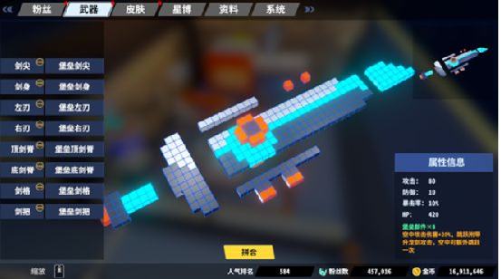 数十套配件可供你选择,可以自由搭配出不同外形和属性的武器或皮肤,畅享DIY的乐趣。在后期,你甚至可以自定义体素方块打造出一把专属于你的武器!