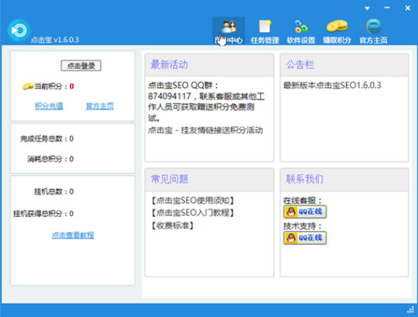 《点击宝官方版》是很多从事SEO优化工作的人所需要的软件,有很多的用户都在这款软件中进行SEO的优化,适用这款点击宝官方版最新版工具可以帮助用户去提升网站关键词的排名以及权重等等,是一款使用起来非常方便的SEO优化工具,这款工具不仅有着非常简单的操作方式,还能让我们快速的见到效果,让用户的网站排名更加的稳定,有了这款工具之后让我们的监控更加的方便,让我们的查询更加的容易,感兴趣的用户快来下载体验吧。