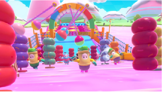 游戏中,你将在扮演一个萌萌的糖豆人,体验同时和大家一起闯关的感觉!在这里迎面扑来的是一组组异想天开的挑战和妙趣横生的障碍赛,同台竞技的则是一批又一批来自世界各地的线上玩家。大家的共同目标都是淘汰对手,晋级下一轮,迎接新的混乱之战。所谓“剩”者为王,只要留到最后,全场唯一的胜利皇冠就是你的!欲戴皇冠,不趁乱搞事怎么能行?看着你身旁的对手们被推搡地弹来飞去摔出场外,还有什么比这更能令人身心愉悦!请尽情享受与对手的相爱相杀、碰撞乱斗吧!