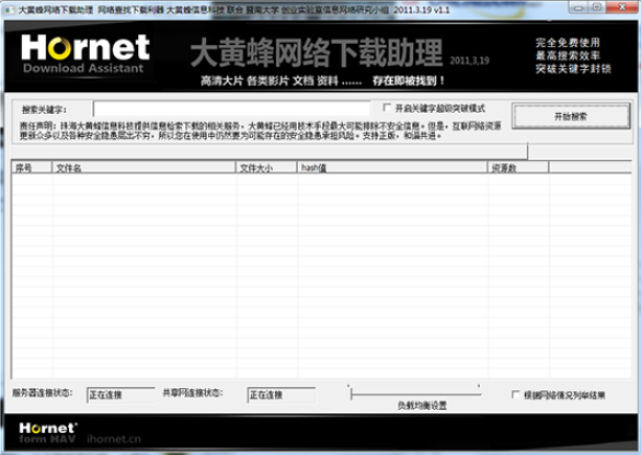 《大黄蜂网络下载助理绿色版》是一款网络文件查找辅助下载工具,这款大黄蜂网络下载助理采用的是多项分布式集群文件搜索的方式,有了这款软件之后就有满足我们各类的搜索需求,支持对各种正版高清的电影进行搜索下载,以及用户喜欢的音乐、小说、文档、公司报告、论文等等都是可以去进行下载的,功能非常的强大并且是完全免费的,在工具中通过HTTP、ed2k、p2p网络对资源进行扫描、收集、下载,感兴趣的用户快来下载体验吧。