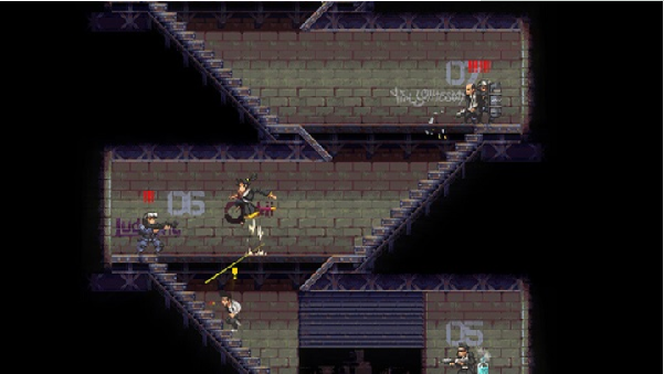 武士零中文版游戏中主打的玩法是快节奏一击必杀,玩家像攻击守卫属于精英敌人,生命值掉落至一定程度后,施放绝对防御,就能击败敌人,多种通关方法,在游戏中可能需要玩家来进行一些背板,游戏中UI左上角会出现任务相关提示,同时也可能会出现神子的身影和王洛对话。有点类似于横版的《迈阿密热线》,在游戏中玩家将作为一名行动迅速,一击必杀的武士,你需要提前备好一个可投掷道具破门后迅速扔出杀死对手。