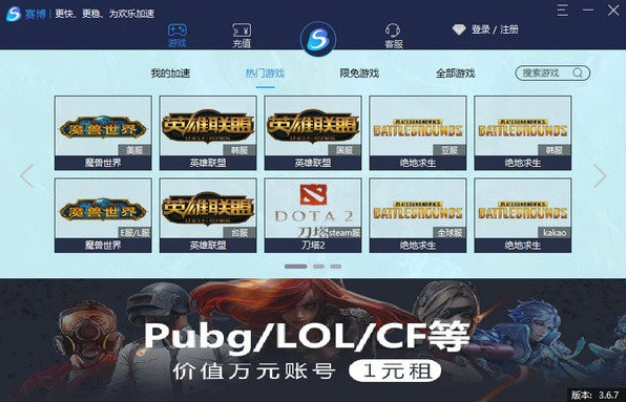 《赛博网游加速器官网版》是一款功能强大且操作简单的加速软件,赛博网游加速器官方免费版软件的功能十分专业,旨在帮助用户广泛的服务游戏加速,使用该款软件进行游戏加速,能够为游戏玩家提供一个稳定、快速的线路游戏环境,该软件能够有效地解决国外应用程序连接带来的延迟、掉线、登录难等外服游戏常见问题,感兴趣的用户快来下载体验吧。