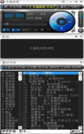 4、歌词显示:同步歌词滚动显示,自动查询下载LRC歌词。