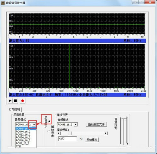 3、下半部分是用户的操作内容,可以简单地修改录音或者播放的音频模式、频率、音量等。