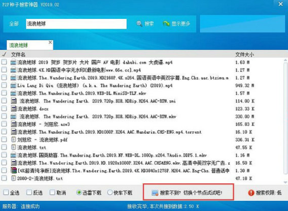 《P2P种子神器官方版》这款软件是基于ED2K电驴网络技术打造的p2p搜索工具,采用的还是目前最为先进的ed2k网络检索技术,这样的好处就是在进行资源搜索的时候会更加的方便快速,能够搜索到更多的资源,并且对于搜索之后的结果更加的准确,这款p2p种子神器绿色版是完全免费的,不会收取用户一分钱,搜索的方式非常简单一键就可以完成搜索,搜索之后可以去快速的进行下载,在选择文件之后使用迅雷来进行下载会更加的方便简单,感兴趣的用户快来下载体验吧。