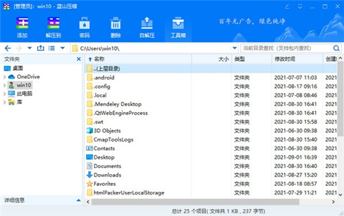 蓝山压缩是蓝山软件的一款压缩解压软件,官方号称百年无广告,支持市面大部分压缩软件功能,内置的工具箱支持MD5验证,压缩格式转换等