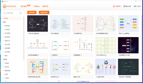 GitMind内置了思维导图、流程图与 UML 图等多种模板主题供用户选择,从产品设计到知识梳理到读书笔记,模板应有尽有,而且质量相当不错点击任意一个模板,进入详情页面,即可预览模板的细节点击右上角的使用模板,可以直接以此模板为原型,创建一个思维导图或者流程图之后,用户可以任意的对基于模板创建的新的思维导图进行修改与自定义