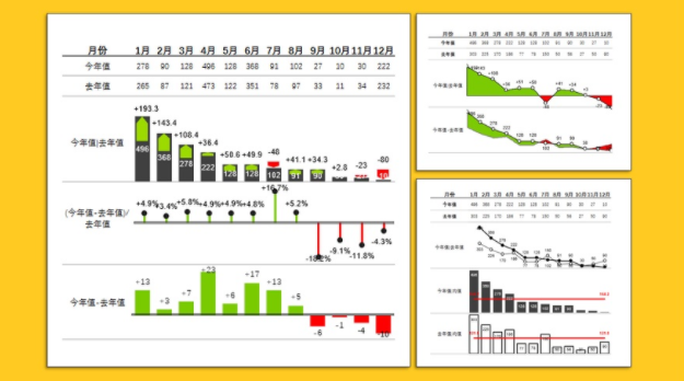 使用该模块可以绘制与表格相融合的类别型与时序型图表,可以展示不同情景下的数据,包括类别对比、时间趋势、部分整体、差异对比、瀑布构成。