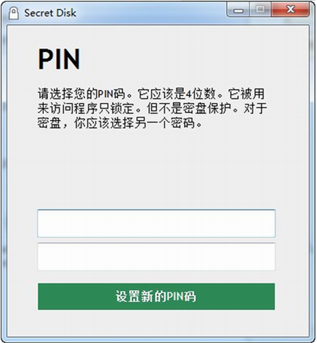 设置点击软件主界面右侧窗格中的虚拟磁盘图标。随后进入下一个设置窗口,在Choose disk letter and description下的列表框中,指定一个盘符,并在后面的录入框中录入虚拟盘的名称或描述。点击下方的链接Set new password,设置加密盘的访问密码(不同于上述软件PIN码)。