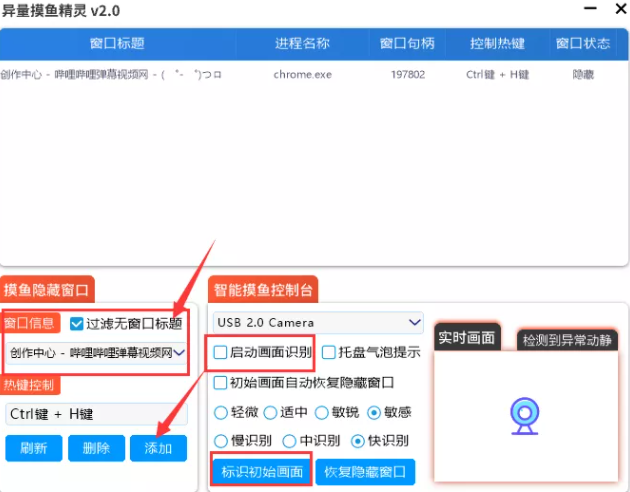 智能识别摄像头画面,如果老板出现,或者其他事物的移动,自动隐藏窗口!